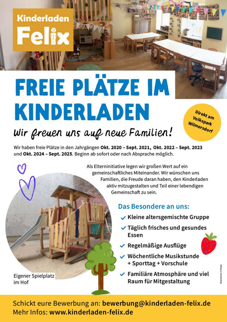E-Mail für interessierte Eltern: bewerbung@kinderladen-felix.de